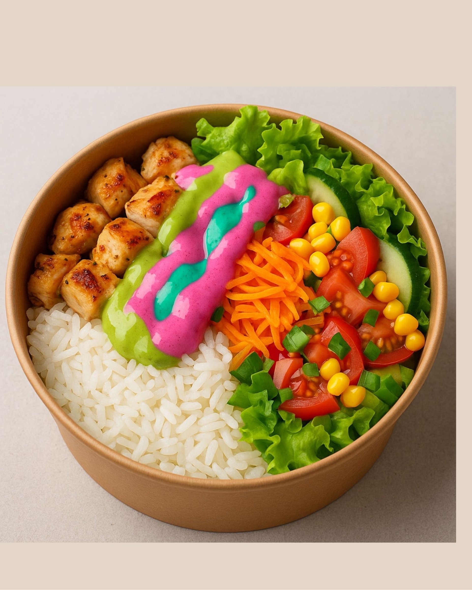 (100gr üç renkli burgu makarna 120gr özel bowl soslu tavuk)